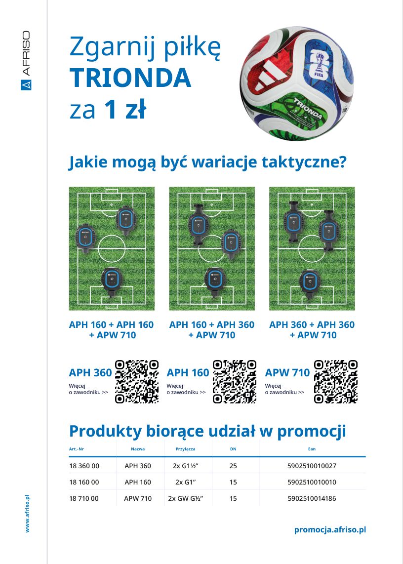 Skompletuj zestaw pomp obiegowych AFRISO i odbierz replikę piłki TRIONDA za 1 zł.